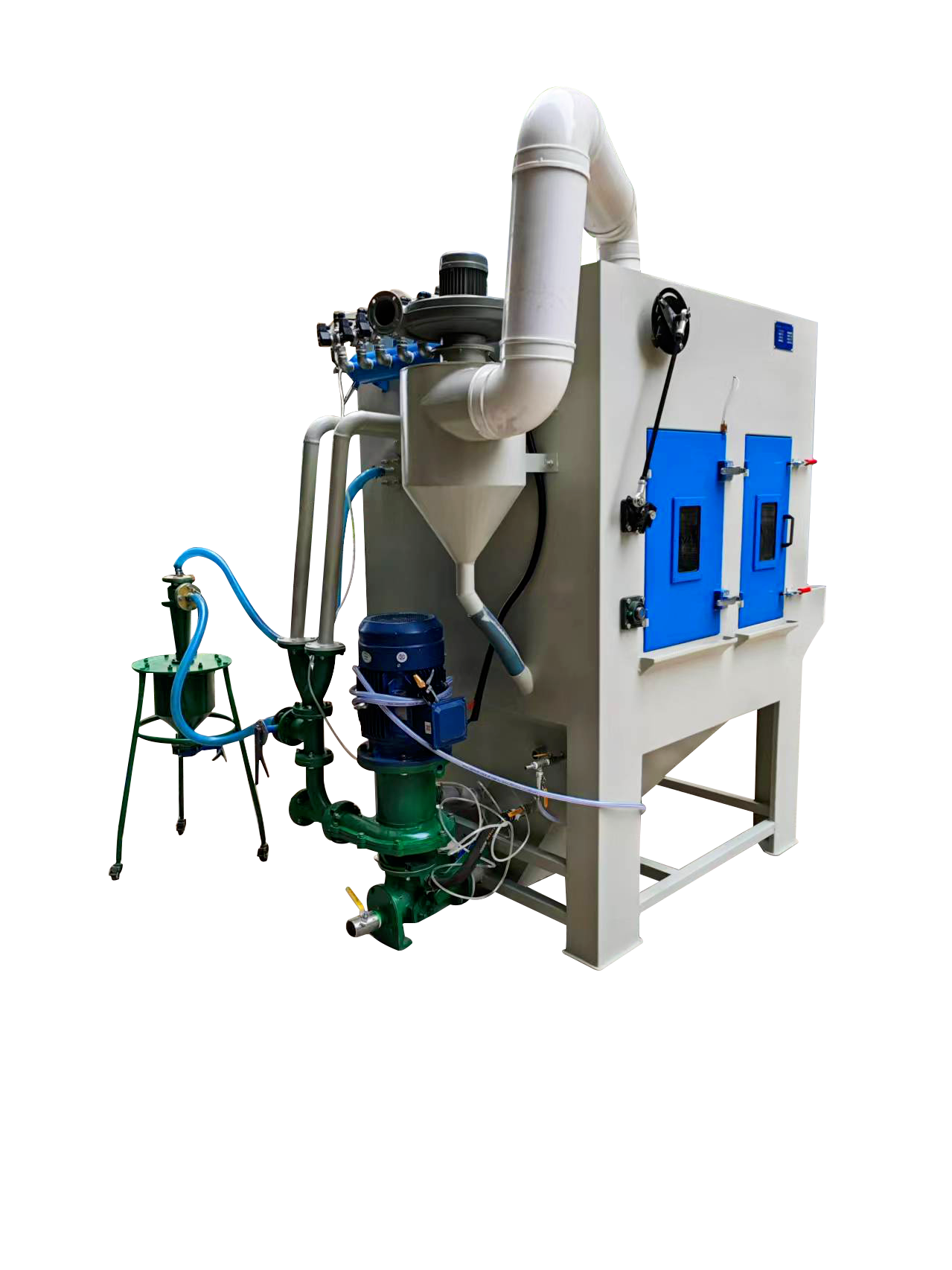3, 配置專業(yè)的砂水泵,能高效混合磨料,噴砂后的產(chǎn)品手感更細(xì)膩、光澤度更好,和干式噴砂效果有明顯區(qū)別;